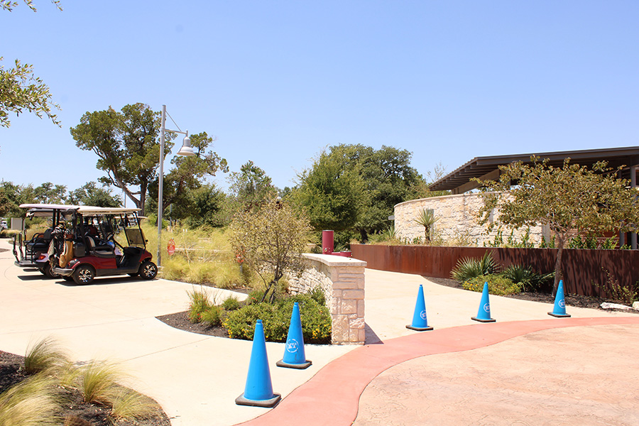 The best parking area for resident golf carts is along the retaining wall on the lower level of the clubhouse— formerly the construction staging area. This will be the most secure area as it is in clear line of sight from the golf shop, the pro’s office windows, and has security cameras in place.